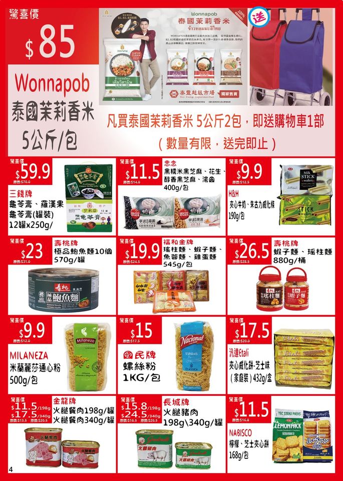 福利一:凡買泰國茉莉香米5公斤2包,即送購物車1部!