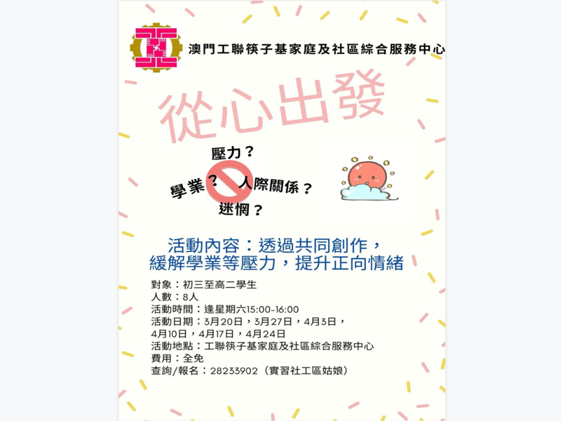 活動場地:澳門工聯筷子基家庭及社區綜合服務中心