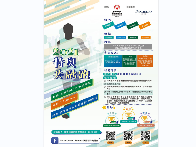 3、特殊參賽者:是指有關文件証明其障礙情況,才符合相關資格