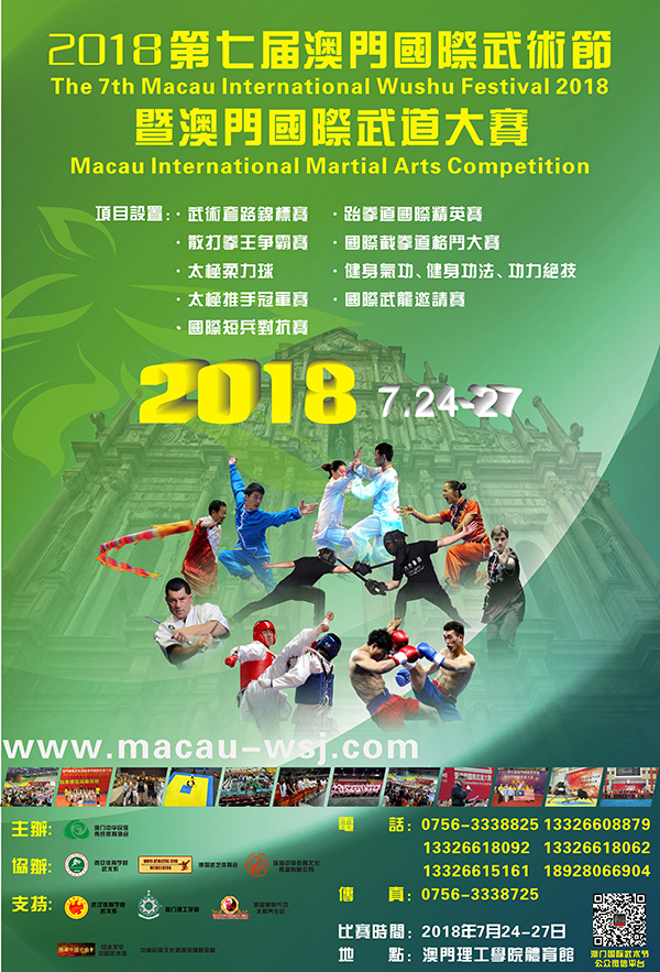 武術愛好者決不容錯過「2018第七屆澳門國際武術節」,一連四日在小城舉行,讓大眾進一步接觸這項令人引以為傲的傳統中國功夫。活動邀請來自世界各地的武術大師展示其精湛技藝,為觀眾帶來各式各樣的武術競技比賽和表演。此外,本屆武術節與「澳門國際武道大賽」同期舉行。