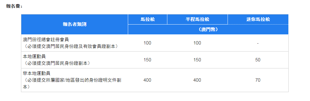 馬拉松共有三項賽事,包括環繞澳門、氹仔及路環各點的國際馬拉松,另有半程馬拉松及迷你馬拉松。其中半程馬拉松及迷你馬拉松更吸引不少業餘好手也來一試耐力。每年賽事前後,全城都掀起一片馬拉松熱潮。
